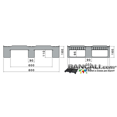 Mini Pallet in plastica 600x800 h 160 mm. in HDPE Vergine Pallet inforcabile 2 Vie idoneo per portata su scaffale e transito su rulliera ottimo per la logistica intensiva Peso Tara 9 Kg.